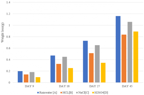 Table 1. Percentage weight loss for various roofing sheet materials [13]