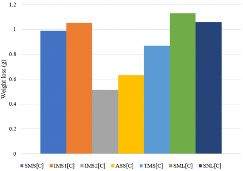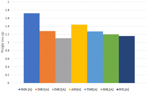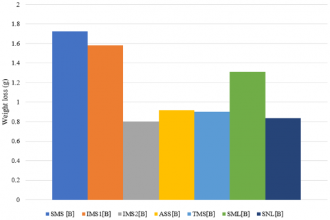 Figure 8(a) shows that sample SML has the least corrosion resistance in NaCL followed by samples SNL and IMS1 with the same corrosion rate. IMs2 has the highest resistance in sample C followed by ASS. Figure 8(b) reviewed that Sample IMS2, has the lowest corrosion resistance in medium D (H2SO4), closely followed by samples IMS1, SML, SMS, and ASS respectively. While TMS and SNL have approximately the same and highest corrosion resistance in medium D.