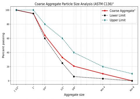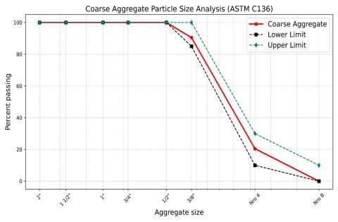 Additionally, the aggregate particle size distribution constitutes a pivotal component of the evaluation process. The material's classification and grading are facilitated based on its suitability for incorporation into the concrete mix. Additionally, the variation in entrapped air is considered [10-12]. In the field, aggregate from quarries with inconsistent granulometry has been identified as a significant challenge, particularly in the context of concrete mix design, where the selection of aggregate size and the consideration of the percentage of trapped air are crucial factors. This challenge stems from the fact that aggregates with inconsistent granulometry often result in poor concrete strength, given their substantial weight of 80% of the total mixture [13, 14].