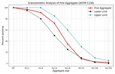 Nominal maximum size: According to NTP 400.037 / ASTM C33, it corresponds to the smallest sieve of the group of sieves, from which the first retained aggregate is generated between 5% and 10%.
