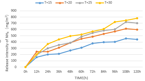 Figure 9. Release intensity of ammonia nitrogen under different temperature conditions