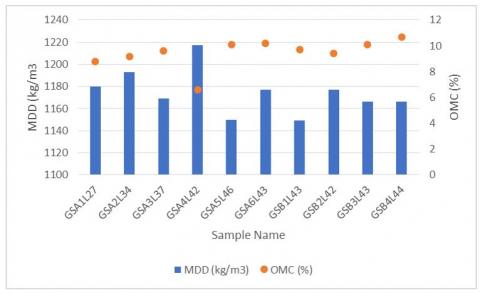 Figure 12. Compaction parameters obtained at modified AASHTO level prior to stabilization
