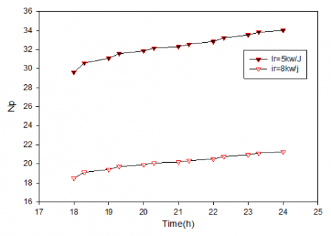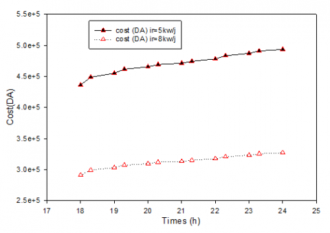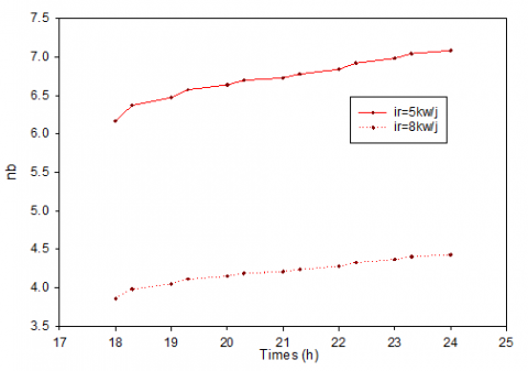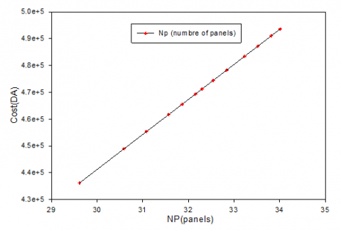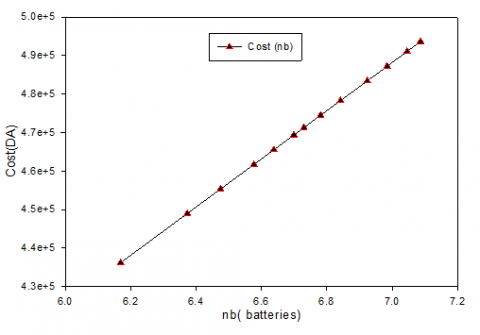 Figure 6 shows the variation of the cost from 18h to 24h which increases with the increase of the production under the effect of the absence of the solar rays and the lowering of the outside temperature. Figures 7 and 8 Show the variation of the installation cost according to number of solar panels and number of storage batteries respectively. The increase of the two elements causes an increase in the cost of installation and the enlargement of the system.
