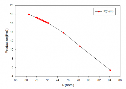 Figure 9 shows the variation of the production according to the electrical resistance. The increase in resistance keeps production at average values according to the condition of autonomy. The resistance is increased to recover the lowering of the temperature, which decreases under the influence of external parameters, such as the outside temperature and the absence of solar rays.
