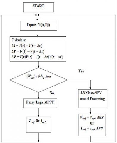 A novel investigation on the ideal decision of the two principle parameters portraying the P&O algorithm is discussed by Femia et al. [4]. The proposed optimization approach customizes the P&O MPPT parameters to the dynamic conduct of the framework created by the particular converter and PV exhibit received. The outcomes demonstrate that in the structure of effective MPPT controllers the effectiveness and adaptability of P&O MPPT control strategy can be abused by enhancing it as it the dynamic characteristics for the framework [5]. To extricate the highest power from the PV and Wind based system, MPPT algorithm is used. P&O algorithm supports for all DC-DC converters. This P&O algorithm is used in only low power applications. Incremental conductance and Hills Climbing algorithm overcomes the drawbacks of P&O algorithm but provides very low efficiency [6].