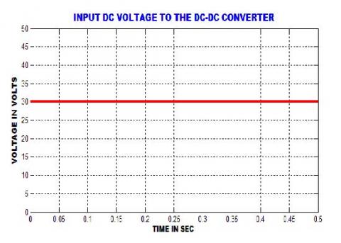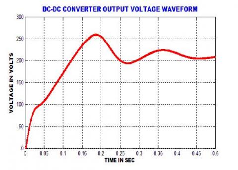 The Figure 9 shows the output voltage of the boost converter using fuzzy logic algorithm. With the input of 30V dc, the boost converter produces a voltage of 210V which stabilizes within 0.5 sec. When compared to P&O algorithm, it provides more voltage stability.