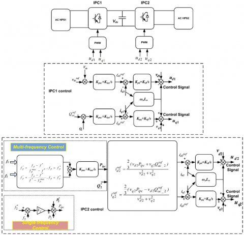 IPC1 regulates DC link voltage while IPC2 regulates the frequency of HPS1 and HPS2. The outputs of current control loop ud1 and uq1 can be represented as:
