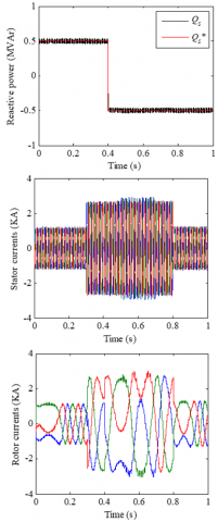 Figure 15. Reactive power, stator currents and rotor currents with ASOSMC (RSVT)