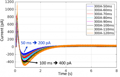 The second step investigates space charge measurements performed for multiple power pulses (250, 350 et 550 A) during short duration (<120 ms). The comparison of TS currents obtained using multiple power pulses is done to prove the measurement principle.