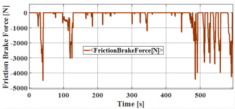 The friction force due to braking is represented by the following Figure 10. We note that, regenerative braking is specific to electric vehicles and makes it possible to transform the vehicle's kinetic energy into electrical energy during a deceleration phase. The converted electrical energy is stored in the battery.