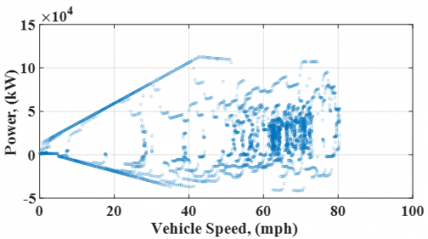 Figure 11. The electromechanical characteristic between the battery power and the vehicle speed