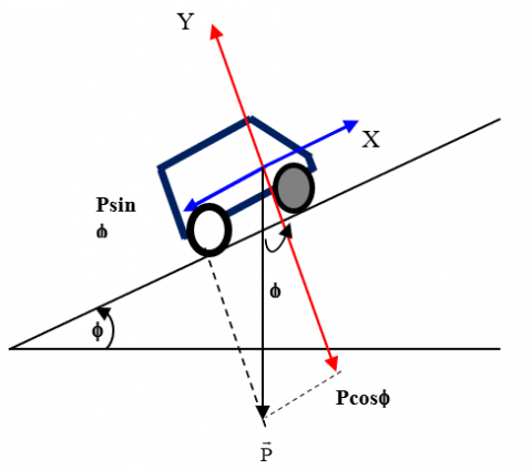Iz stands for the moment of inertia associated with the Z-axis gy for accelerates laterally, and m for the mass of the vehicle. The resultant pitch angle moment that the wheels concerning the vehicle is M, where FX, Fy are the horizontal and vertical forces, consecutively [14]. The effects of the force exerted by the X-axis on the vehicle, comprising the mechanical drag force and the weight element caused by the gradient of the road, are as follows [11]: