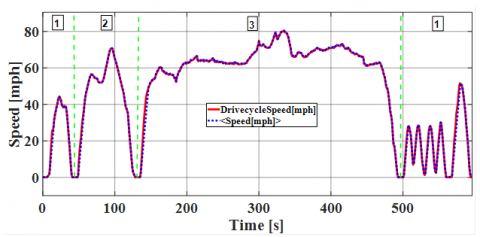 The following Figure 7 shows the speed of the vehicle. It can be subdivided into three intervals or into three micro-paths: