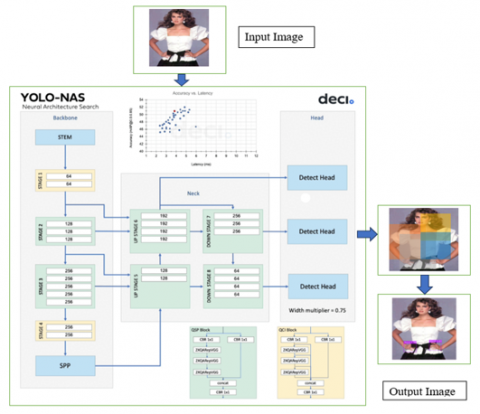 The object detection basic model, YOLO-NAS, has been developed by Deci AI, representing a significant advancement in this field [19]. The product is a result of employing sophisticated Neural Architecture Search technology, which has been carefully developed to specifically target and overcome the constraints observed in prior iterations of YOLO models. YOLO-NAS demonstrates a substantial advancement in object detection with notable enhancements in quantization support and accuracy-latency trade-offs [20, 21].
