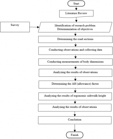 Primary data is data obtained directly. Primary data collection techniques are carried out directly for this study. Data obtained through the process of observation, measurement surveys and documentation. Primary data obtained in the field are the height of the existing sidewalk, and the dimensions of the body of road users.