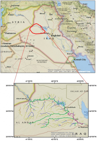 The part of the upper Euphrates basin at Anbar Province has been chosen for the study which represents the region of entry of the Euphrates River into Iraq, and this part to reflect the water reality of all areas that depend on the waters of the Euphrates River.