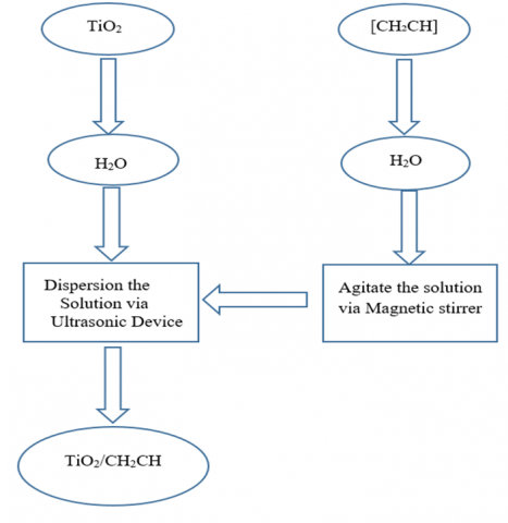 In other words, it could explain the preparation process through specific steps. Through the TiO2 dispersion process. The 50 ml of the PVA solution was dropped into the TiO2 solution at a rate of 12.5 ml every 30 minutes after the first two hours of the total dispersion period (four hours).