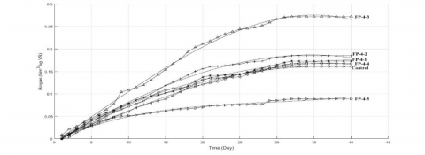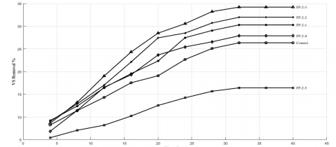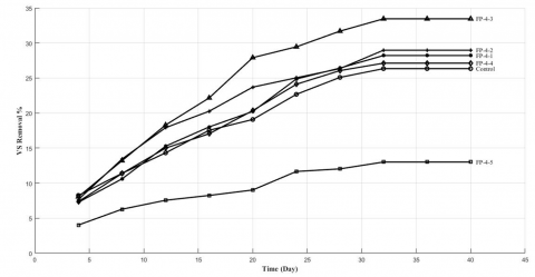 In Zahedi et al. [15], the amount of CH4 enhancement caused by FP pre-treatment was 27%, while in Hallaji et al. [16], Wang et al. [61], Erden and Filibeli [45], and Pilli et al. [17], it was 25%, 20%, 19.4%, and 15%, respectively. In this study, the content of CH4 enhancement was achieved with FP-2-3 (20.2%), where 56.8% of the CH4 content was achieved by digestion of the control substrate, which supports the efficacy of FP in increasing CH4 methane production from the AD of OMW.