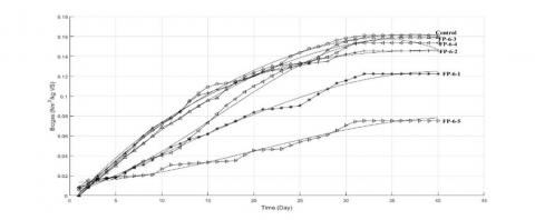 Biogas samples were extracted through a rubber stopper of the reactor with a gas-tight syringe of 250 lμ. A gas chromatograph was used to analyze the biogas samples (Agilent 490 Micro GC Biogas Analyzers, USA). The GC measures the concentration of CH4, CO2, CO, O2, and C2. It comprises a thermal detector and capillary column, with working temperatures of 80℃, 100℃, and 180℃ for the detector and column injector, respectively, and a flow rate of 10 ml/min for Ar and He.