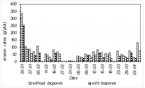 Figure 4. Comparison of erosion rates with biopores infiltration holes applications
