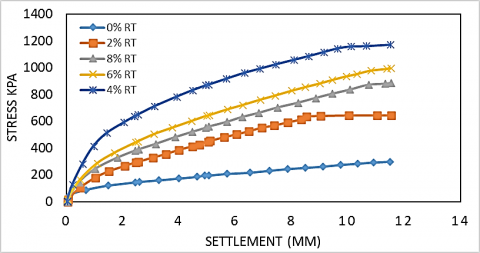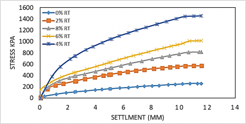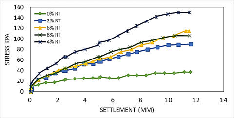 Figure 6. Loading test for first soil with 22% calcium carbonate, treated with rubber tire powder dry test
