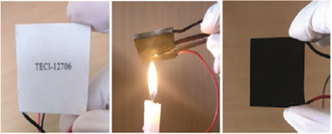 Several studies aimed at increasing the absorption of TEG thermal energy by treating the electrical conductivity improvement on p and n type TEG materials were carried out [17-20]. This means that it is necessary to modify the TEG module material to produce a better TEG module electrical conductivity [21]. Another method that also aims to improve the ZT TEG module is by using certain treatments on the top surface of the module which is more practical. This aims to increase heat absorption on the hot-side of TEG [22]. This method is better known as electroplating or electroforming. Utaminingrat and Eskani [23] conducted a quite unique study by adding a carbon layer (coated carbon) to the TEG module by exposure to the heat of a candle flame until it turned black (Figure 1). This was carried out on several modules with variations in carbon layer thickness from 3, 3.5, 4.5 and 6 μm which were pressed using a special camera. After that just tested under the hot sun. In the test, the exposure to sunlight is set in such a way as to focus the light using a Fresnel lens. To maintain the temperature difference in the TEG module, a circulating water block is used in the aluminum block. The test results show that there is an increase in TEG output power six times greater than without wax heat treatment. From this test, it is not reported what the surface temperature of TEG is at each thickness of the carbon after heating the candle flame.