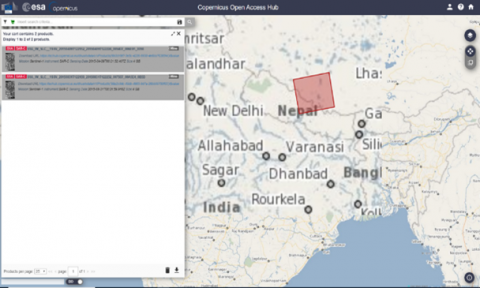 To determine which image pair is co-registrable, had the least perpendicular and temporal baseline values, trial combinations of image pairs from the seven downloads were performed. According to Jebur et al. [3], Massonnet and Feigl [48], Guzzetti et al. [5], and Schlögel et al. [51], this phase is essential for quality assurance to select a preferred pair with the lowest perpendicular and temporal baseline). The SAR pair's perpendicular baseline is 122.51 meters, and its temporal baseline is 144 days. For In-SAR/DInSAR research, high levels of this variable have allegedly been used [1]. Additionally, Singhroy et al. [52] conducted InSAR on two SAR images with a temporal baseline of up to 736 days producing a high coherence value, whereas Mondini et al. [49] employed a temporal baseline of 288 days. Values lower than the result used in this study could have been preferable if data availability throughout the time of the earthquake was not a constraint. It was recognized that a greater perpendicular and temporal baseline limit the accuracy of InSAR/DInSAR processing or provide no result at all. The image pair must overlap over the selected Area of Interest (AOI) in Nepal, which is another crucial factor (Figure 4). This is not a constraint because there is a common overlapping area between two SAR images over an AOI. Table 1 shows the information of the two overlapping SAR images.
