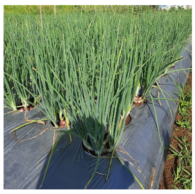 Parameters observed before harvest included plant height and the number of leaves. Parameters observed at harvest time were the number of bulbs, fresh weight of shallots per cluster, and fresh weight of shallots per plot. In contrast, dry bulb weight per cluster and dry bulb weight per plot were observed after the harvested shallots were dried for seven days at a temperature of 28℃ and 82% moisture. The surface of the mounds is covered with black silver plastic mulch or soil to maintain temperature and soil fertility and protect against erosion due to rain. Watering is done every morning and evening using well water at a dose of 100 mL per plant, but if the soil is still moist due to rainwater, watering is not carried out. In total, there were 36 research plots, where each plot measuring 1 m x 1.5 m, with a height of 30 cm with a distance between plots of 50 cm and a distance between replications of 50 cm, per plot of 27 plants with a spacing of 20 cm x 20 cm.