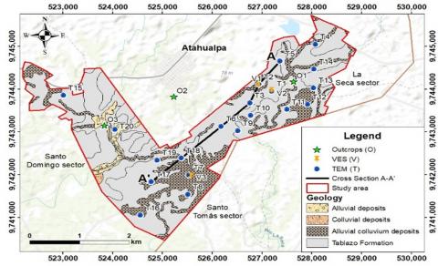 Vertical Electrical Soundings (VES) and Transient Electromagnetic Soundings (TEM or TDEM) are geophysical methods widely used in groundwater prospecting due to their effectiveness and profitability. These tests allow measuring the electrical resistivity of the subsoil as a function of depth, estimating lithology and water saturation zones [20]. Meanwhile, VES are used more on irregular surfaces or with abundant vegetation. TEMs are better on relatively flat surfaces with little or scarce vegetation and no electromagnetic interference. Both methods need subsequent validation with local geology [21, 22].