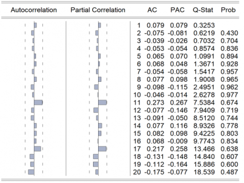 4.4.1 Diagnostic test 1: Correlogram Q statistics (correlogram of the residuals)