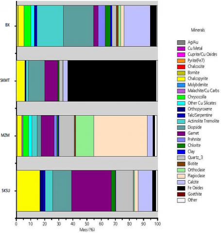 Figure 13. QEMSCAN image of the modal mineralogy for the different end members in Chalcobamba