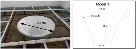 The physical models of the Morning Glory Spillway of Dokhan Dam were made at scales of 1:45.65 and 1:27.63. The odd scale of the model was determined by the inside diameter of the acrylic pipe used to model the tunnel conduit (see Figure 2).