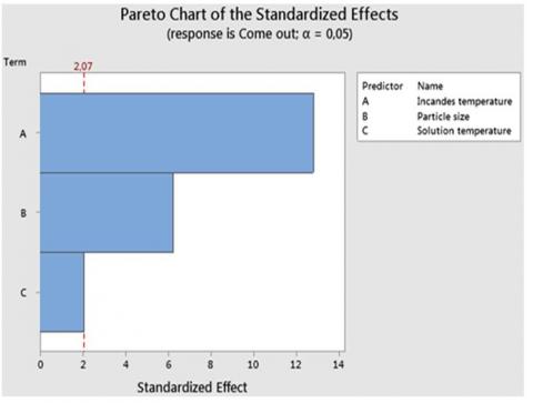 Figure 13 presents the Pareto diagram illustrating the influence of various process parameters. It is evident that among these parameters, the calcination temperature of alunite ore exerts the greatest influence, followed by particle size, with dissolution temperature having the least impact. Contours depicted in Figure 14 as well as three-dimensional space diagrams in Figure 15 further highlight the significant influence of ore calcination temperature, particle size, and solution temperature on the dissolution yield of alunite into solution. These findings are also corroborated by the mathematical model of the process [37, 38].