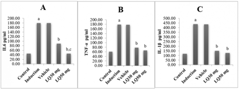 The study investigated only two doses of LQ (30 mg/kg and 50 mg/kg), which may not fully represent the optimal therapeutic range for maximum efficacy and safety. Expanding the study to include a broader range of doses would help determine the minimum effective dose and evaluate any possible toxicity at higher levels, aiding in the establishment of a safer dosing profile for future applications.
