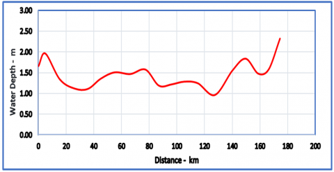 Figure 6. Water depth of Euphrates River within the study area in (m) - April (2024)