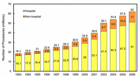 Figure 5. Chart of the number of CT procedures per year in the United States from 1993 to 2006 [19]
