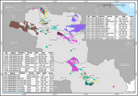 Bener Meriah: LMU 58; Central Aceh: LMU 38, LMU 102; Gayo Lues: LMU 10 |