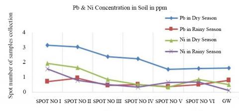 The Ni concentrations in wastewater measured from sampling sites I through VI, as well as groundwater, are shown in Table 9 for the dry season. There was no noticeable variation across samples. However, observations were different during the rainy season. Ni concentration was lower in the rainy season compared to dry season. Ni levels in both drinking water (0.1 mg/kg) and inland water (1 mg/kg) (Table 9) were above the maximum contaminant level (MAC) [18, 19].