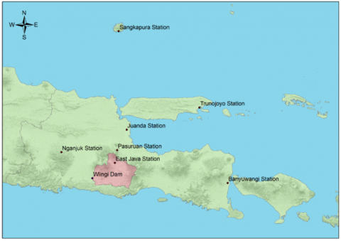 Figure 1. Location map of climate stations in East Java Province