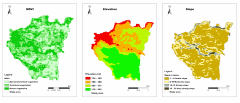 (b) NDVI, slope and DEM results