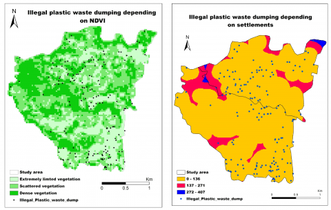 Figure 10. The appearance of illegal plastic waste in line with NDVI and distance to settlements