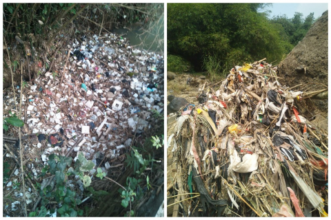 Study visits to a subset of these hotspots clearly identified plastic waste in vacant land, riverbanks, elevated areas, in proximity to settlements and beside roads in both villages, as illustrated in Figure 4.