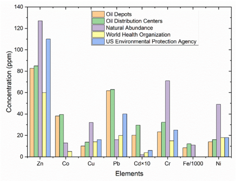 Being a part of the earth’s crust, the heavy metals (arsenic, cadmium, chromium, lead, and mercury) contrary to their name may get concentrated in the soil and water due to either geological activities or human activities. Oil storage sites and distribution facilities are the main sources of heavy metals pollution, because the emissions are contributed by the activities of fuel storage, transportation, and services. So, all these sources of heavy metals pollute the surrounding environment. The closeness of such operations to the residential areas and the agricultural lands gives an impression that environmentally sensitive groups are likely to be increasingly exposed to this route of emission and hence are likely to be adversely affected.