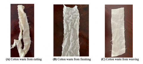 The textile industry has long grappled with the challenge of sustainability, particularly in waste managing the vast amounts of production waste. The growing crazy for cheap, trendy fashion in Europe has driven people to buy a whole lot more clothes over the past several years, this represents a significant 40% increase in the amount of clothing purchased per person. The textile industry is a significant contributor to the EU's overall environmental impact, accounting for around 2-10% of the total. Most textile production occurs in third countries, where the manufacturing process requires massive amounts of water, chemicals, and pesticides, particularly for cotton [1]. Cotton materials, also known as industrial waste, are the materials generated during the manufacturing process [2], More or less 100 million tons of cotton waste was generated yearly, Accounting for approximately 35 to 40 percent of the total global textile waste. Nevertheless, less than 30% of this cotton waste was recycled [3]. In Thailand, many textile and fashion factories in Bangkok and surrounding areas generate fabric waste [4]. According to a recent study, 77% of Thai adults discarded clothing in the past year, with 40% disposing of over ten items and 25% throwing away at least three garments after wearing them only once. Millennials exhibit higher turnover rates, with 20% discarding clothes within a year [5]. As well as, Thailand exported $2.68 million in cotton waste, primarily to Japan, Malaysia, and Spain. Industry reports project continued growth in textile waste, which is addressed through methods like source reduction, recycling, landfilling, and incineration [6]. The study found that textile production and processing across the apparel industry generates significant waste. Fiber production and processing lead to 9-40% fiber loss, particularly in processing staple fiber like cotton and synthetics. In the assembly stage, 12.5% of fabric is lost through cutting and sewing inefficiencies. At the end-of-life stage, 80% of textile waste is landfilled [7].