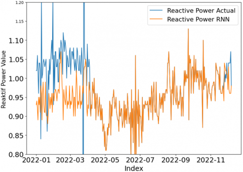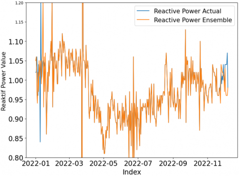 Based on data from ensemble predictions in Figure 14, the correlation between reactive power consumption at peak load times and off-peak loads shows that it is stronger than past data. Likewise, the correlation between consumption during peak loads and off-peak loads is also stronger than actual or past data, this reflects an increase in the consistency of electricity use in the future. Correlation between variables that is stronger than in the past indicates a pattern of changes in electrical power use in the future.