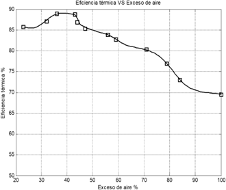 An investigation has been carried out to explain how the phenomenon of the dependence of thermal efficiency on excess air and fuel regulation occurs and also to test the specific hypothesis of the investigation; its interest is focused on explaining why a phenomenon occurs and under what conditions it occurs, as well as why two or variables are correlated, being in our research the excess air and fuel to obtain different values of thermal efficiency and pollutant emissions [5].