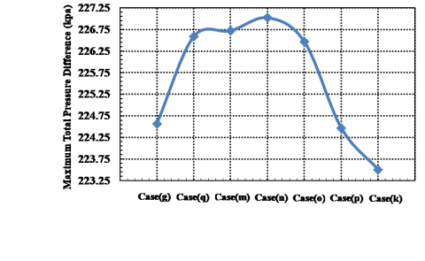 Figure 12. Maximum total pressure drop between Z/L=0.1 and Z/L=0.7