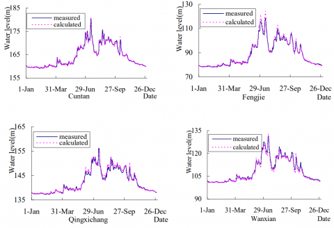 The comparison between measured water-level and calculated water-level of some stations in 2000 is displayed by Figure.2, it is indicated that the average difference between measured water-level and calculated water-level is 0.29m, the errors is allowable.