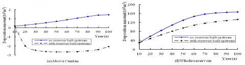 Figure 5. The deposition developing in TGR with reservoirs built upstream or not