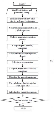 For the flow problem of heat lattice in porous media, Guo Zhaoli has put forward a solution of two distribution functions 16. Through adding a temperature distribution function similar to the speed distribution function, the problem can be solved.